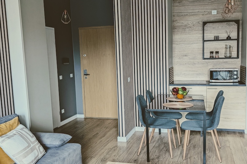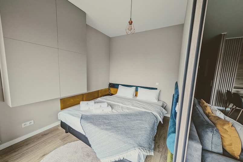 Nowoczesny 2 pokojowy apartament znajdujący się w eleganckiej "19. Dzielnicy" w pobliżu ścisłego centrum Warszawy. Apartament położony jest w strzeżonym apartamentowcu, posiadającym podziemny garaż oraz miejsca parkingowe przy osiedlowych budynkach. Apartament wyposażony jest w patio umożliwiające miły wypoczynek, który uatrakcyjnia widok na podwórze pełne zieleni. 1-4 osoby.