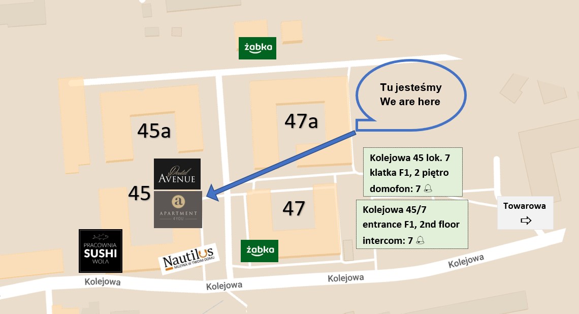Jak trafić do biura Apartment4you przy ul. Kolejowej 45 w Warszawie?