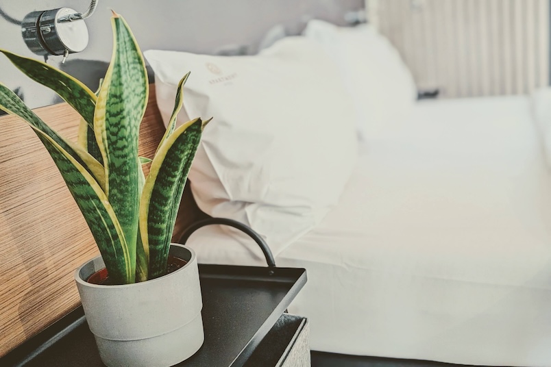 Dormitorio: cama doble, ropa de cama, armario, lámparas de noche