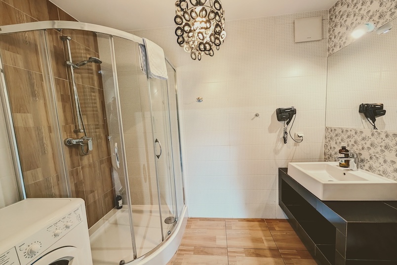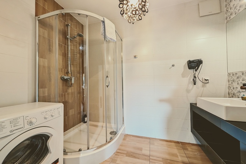 Baño: ducha, lavadora, secador de pelo, toallas
