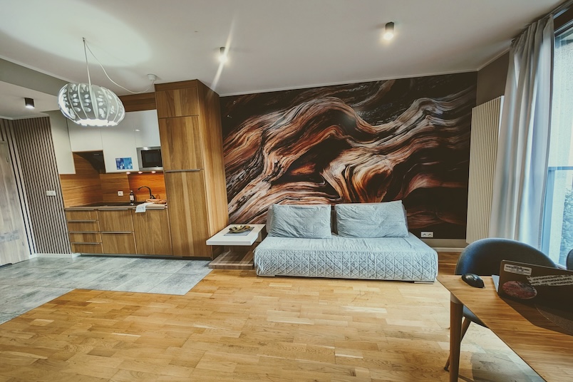 Apartamento moderno y funcional de 1 dormitorio en el centro de Varsovia. Ubicado en un edificio nuevo y seguro con vigilancia las 24 horas, aparcamiento subterráneo y aparcamiento gratuito junto al edificio. Ideal para 1 a 4 personas.